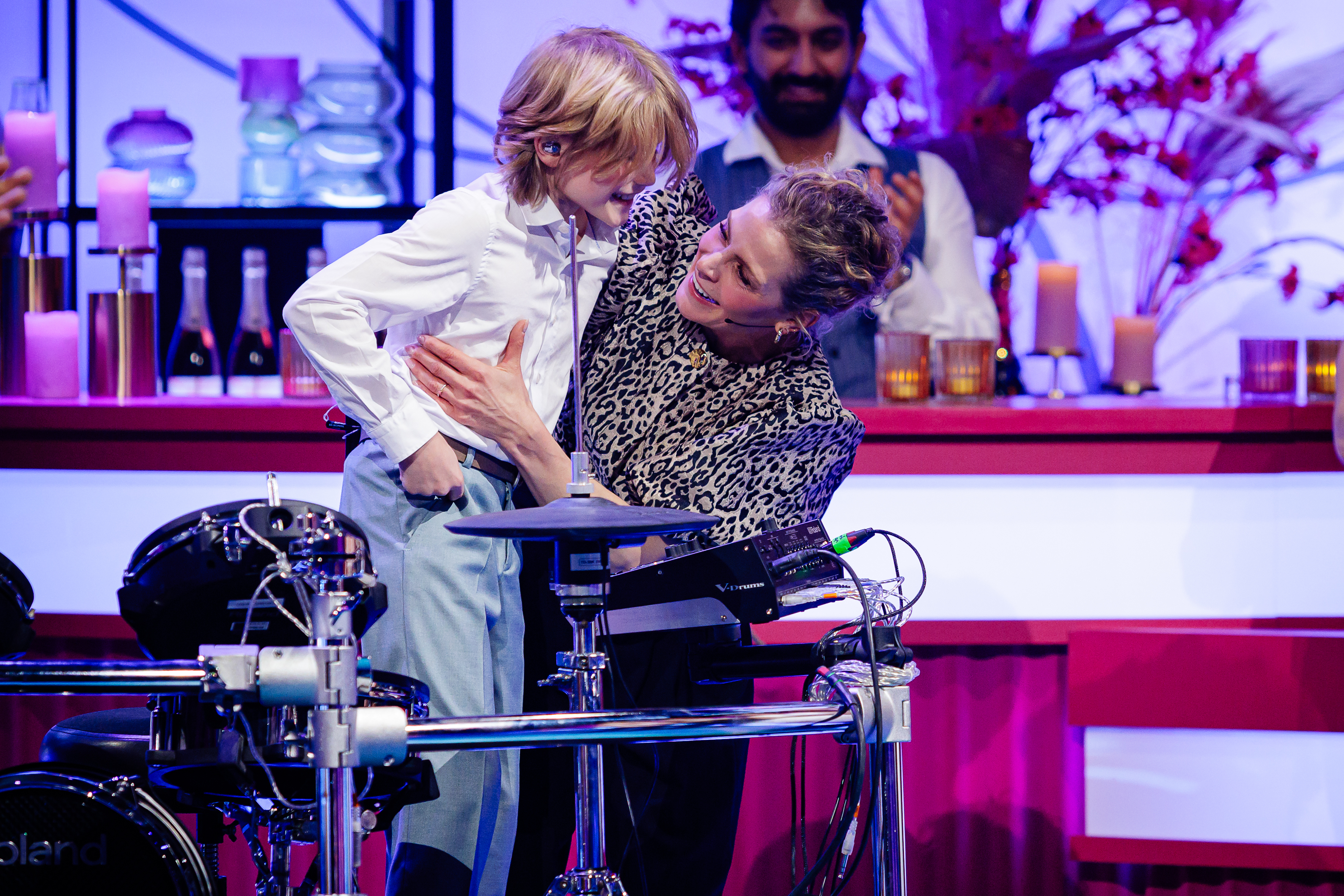 Dina Tersago verrast door haar zoontje Isak aan de drums in JAMES & co