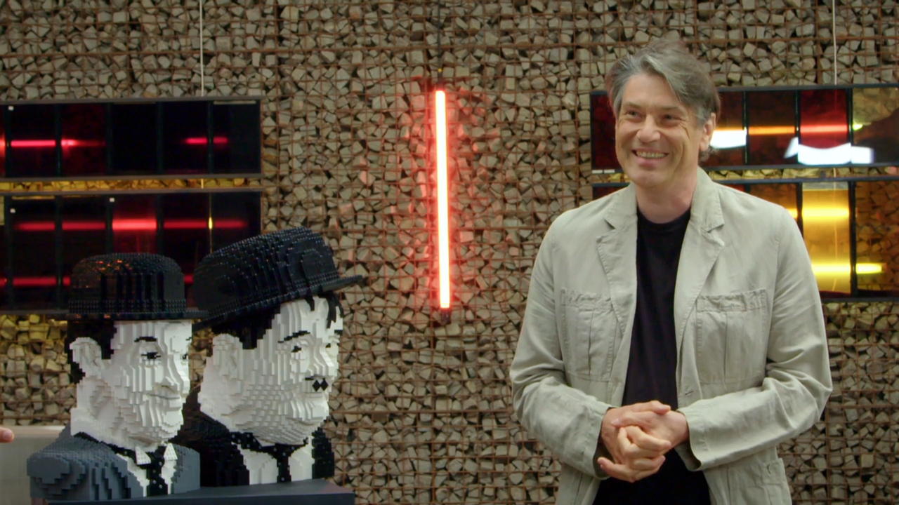 Kunstenaar en cabaretier Dirk Denoyelle was in een vorig leven stemmenimitator, maar tegenwoordig houdt hij zich vooral bezig met het bouwen van Lego-kunstwerken. Hij komt in Stukken van Mensen de hoofden van het komische filmduo Laurel en Hardy verkopen. “Er zijn maar 20 certified Lego-professionals in de wereld en ik ben daar al 11 jaar één van”, vertelt Dirk. In de hoofden van het onafscheidelijke duo zitten maar liefst 8500 blokjes en Dirk werkte er meer dan 80 uur aan: “Je moet toch drie weken tot een maand werk per hoofd rekenen en er zitten een paar duizend euro aan Legoblokjes in. Ik wil dan ook niet onder de 5000 euro gaan.”