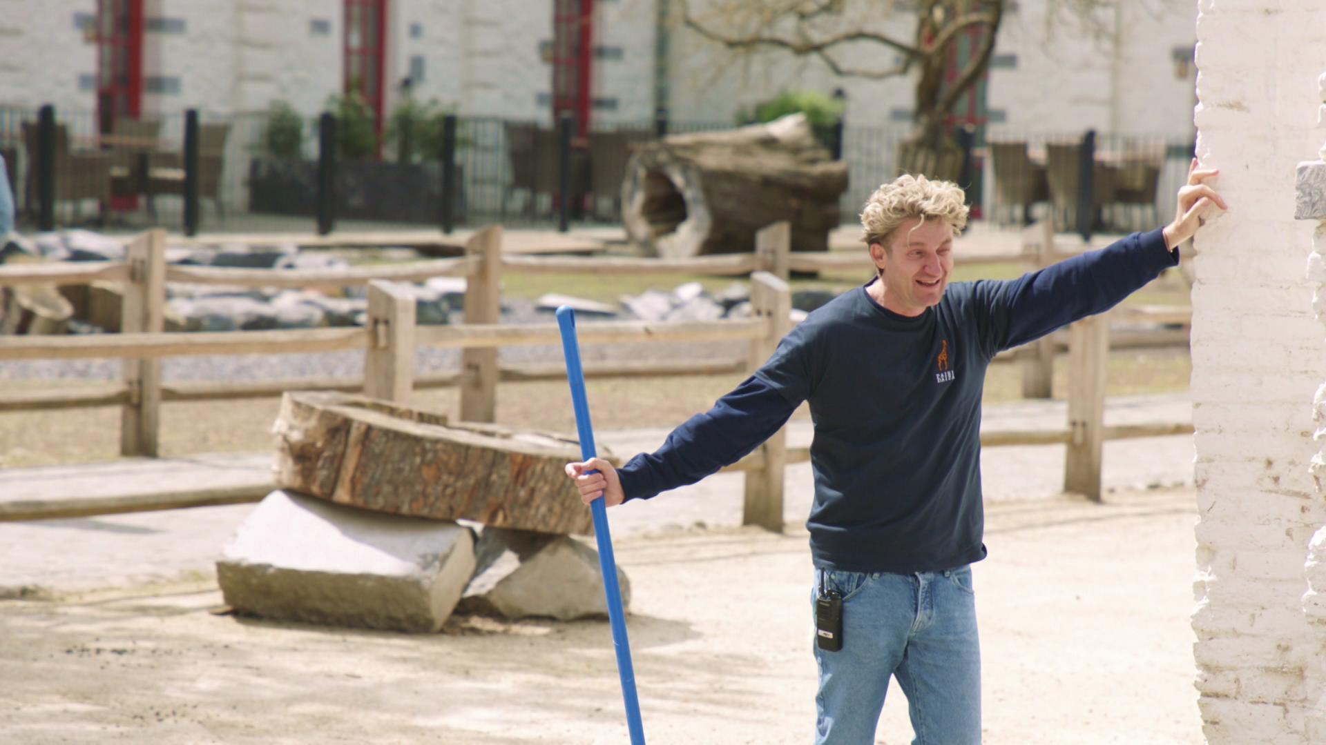 Na hun eerste stop in Koekelare, waar ze zich helemaal hebben kunnen uitleven als gemeentewerkers, rijden Jani en James naar Pairi Daiza. Daar zullen ze de komende dagen het park draaiende moeten houden. Maar op weg naar het dierenpark hebben ze vooral één grote bezorgdheid: "We gaan de hele tijd stront moeten scheppen." En al snel blijkt dat ze niet helemaal ongelijk hebben. Na het voederen van de zeeleeuwen worden ze gevraagd om bij de geiten te helpen. Ze krijgen een borstel, een kruiwagen en een bladblazer en zien de bui al hangen. "Ik voel de kak tot in mijn ogen, ik zie niks meer", klaagt Jani tegen James, die de keutels al dan niet onbedoeld zijn kant op blaast. En dan steekt er plots een vervelende dierenallergie op: "Je bent allergisch aan dieren en je zit in Pairi Daiza" lacht James, terwijl een niezende Jani het gevoel heeft dat zijn keel opzwelt.