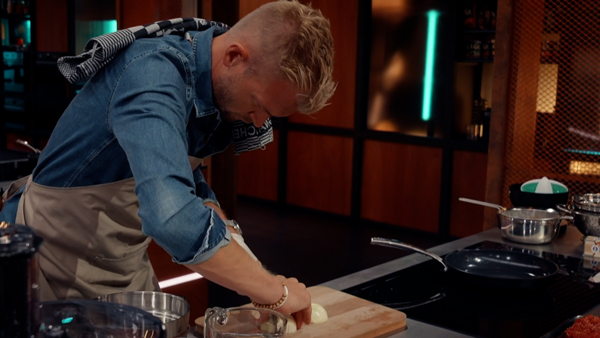 De bekende chefs staan op scherp, net als de messen. Dat ondervindt Ruben Van Gucht aan den lijve wanneer hij een pompoen probeert te snijden met een -eerlijk is eerlijk- nogal bloeddorstige mandoline. Het resultaat? Veel bloed, zweet en vooral een diepe snijwonde met grote gevolgen. “Je denkt onmiddellijk: f*ck het is hier gedaan, het eindigt hier”, vertelt Ruben zichtbaar aangeslagen. “Op dat moment stond ik echt nat in het zweet en dacht ik: ik wil gaan zitten, geef mij een cola!” Ruben is zelfs even niet meer in staat zelf in de potten te roeren, dus springen juryleden Inge en Michaël in. Mandoline versus RVG: 1 – 0.