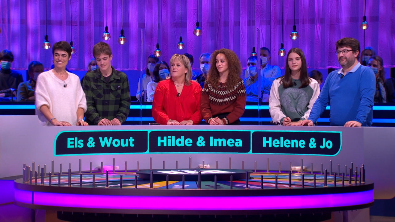 Els & Wout (44 en 14) uit Sinaai. Els is kinderjuf, Wout studeert wetenschappen en wilt net zoals zijn mama in het onderwijs staan. Els heeft vier pubers in huis rondlopen, maar rekent op haar zoon om de prijzen binnen te halen.