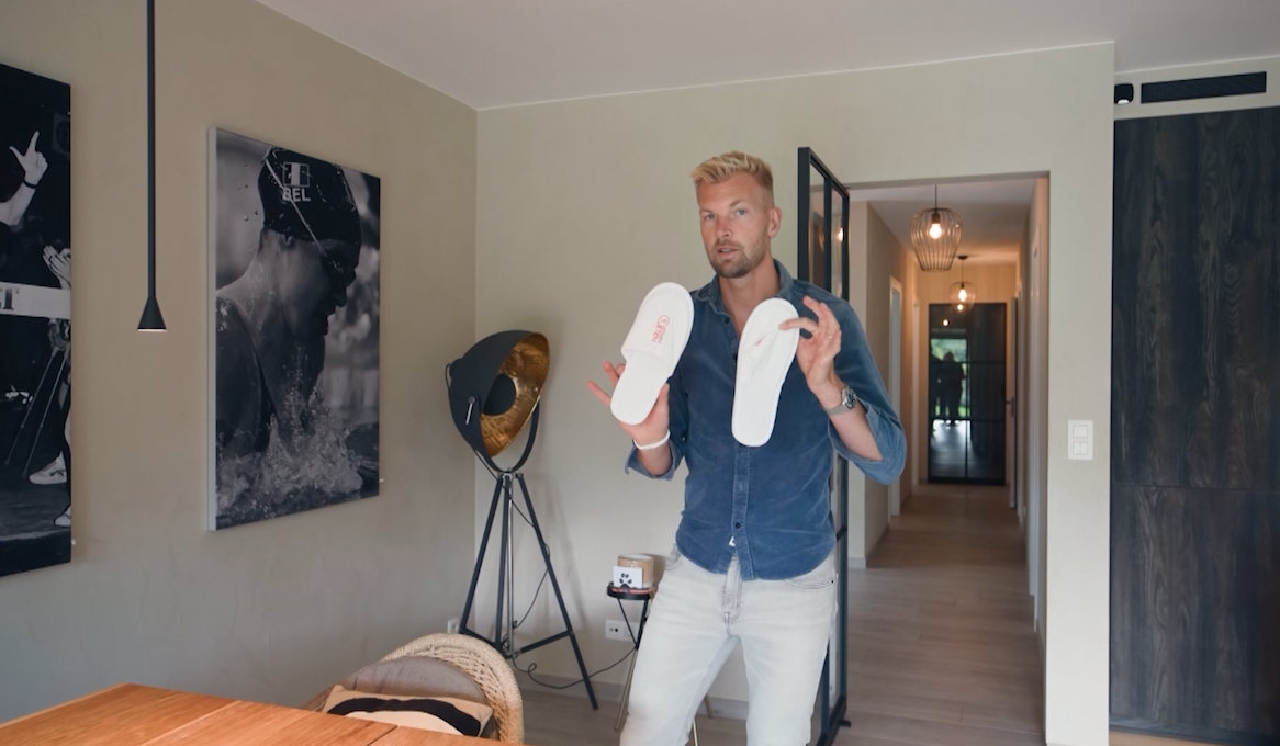 “Ik ben een grote liefhebber van kuisen,” klinkt het. “Als je ergens gaat eten, wil je toch in een cleane omgeving zitten? Dat straalt af op de kwaliteit van je bord.” Om zijn smetteloze woning te beschermen, krijgt elke gast bij aankomst zelfs zijn eigen gepersonaliseerde slofjes: "Ik heb voor iedereen slofjes van Komen Eten."